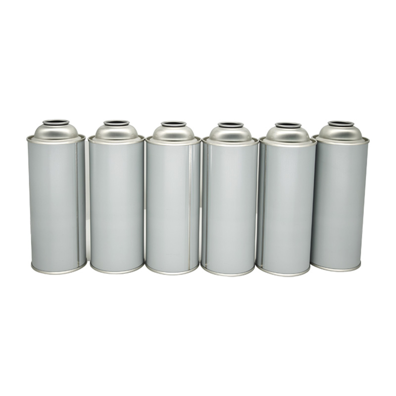 Latas de aerosol vacías de pared recta, redondas, de 65 x 159 mm de diámetro, para gas butano de 227 g.