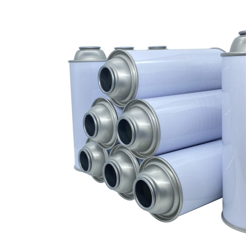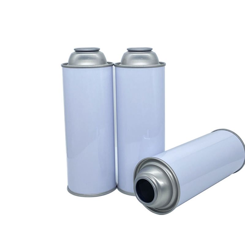 Latas de aerosol vacías al por mayor, tamaño 60×158 mm, paredes rectas, revestimiento blanco.